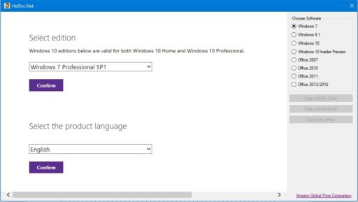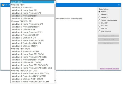 Il se trouve que les ingénieurs logiciels de Microsoft sont intelligents (comme nous avons toujours su) et a fait un déploiement numérique appropriée de Windows (à l’exception des éditions de Windows 8.1 Bing), et a dû changer de dernière minute (probablement à cause de quelque ignare plus haut ou dans le marketing). Bien que cela peut être résolu avec un script dans le navigateur web, détails ci-dessous (recommandé pour Linux seulement) Jan Krohn (Heidoc.net) a fait un Microsoft Windows et Office .iso Télécharger l’outil qui applique automatiquement le script et vous permet de télécharger de Windows 7, Windows 8.1, Windows 10, Windows Insider Preview, office 2007, office 2010 et office 2016. Site de Jan Voir pour plus de détails: