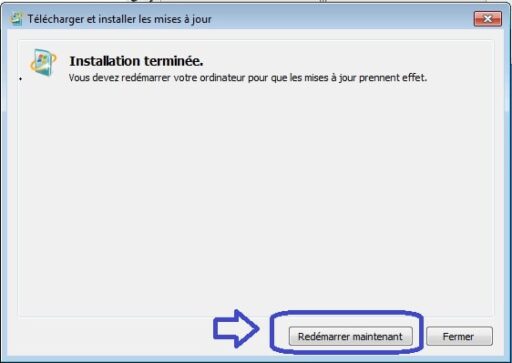 A la fin de l’installation, le programme reconfigure le service Windows update puis redémarre votre ordinateur automatiquement afin de finaliser l’installation des mises à jour correctives.