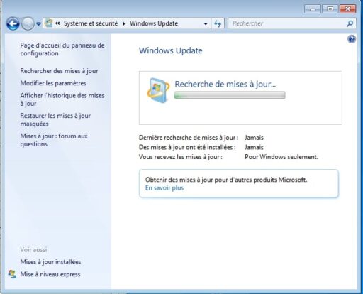 - Après le redémarrage de Windows 7 rendez vous sur la recherche des mises à jour et lancé une recherche